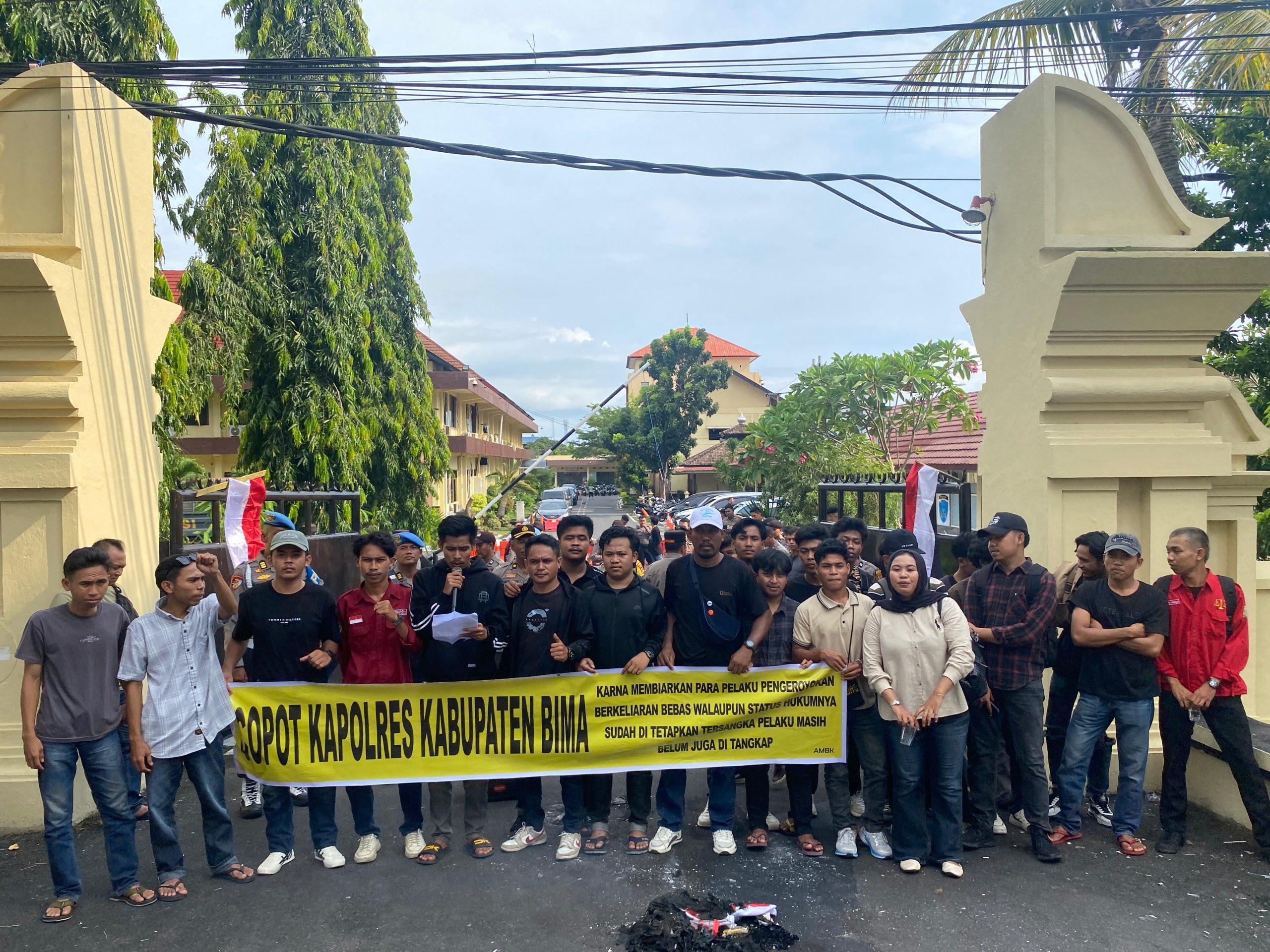 Dalam aksinya, massa membawa berbagai spanduk dan poster berisi tuntutan agar aparat penegak hukum (APH) bertindak tegas dan profesional. Mereka menilai bahwa kinerja Satuan Reserse Kriminal (Sat Reskrim) Polres Bima Kabupaten tidak maksimal, sehingga menimbulkan ketidakpercayaan publik terhadap proses penegakan hukum.