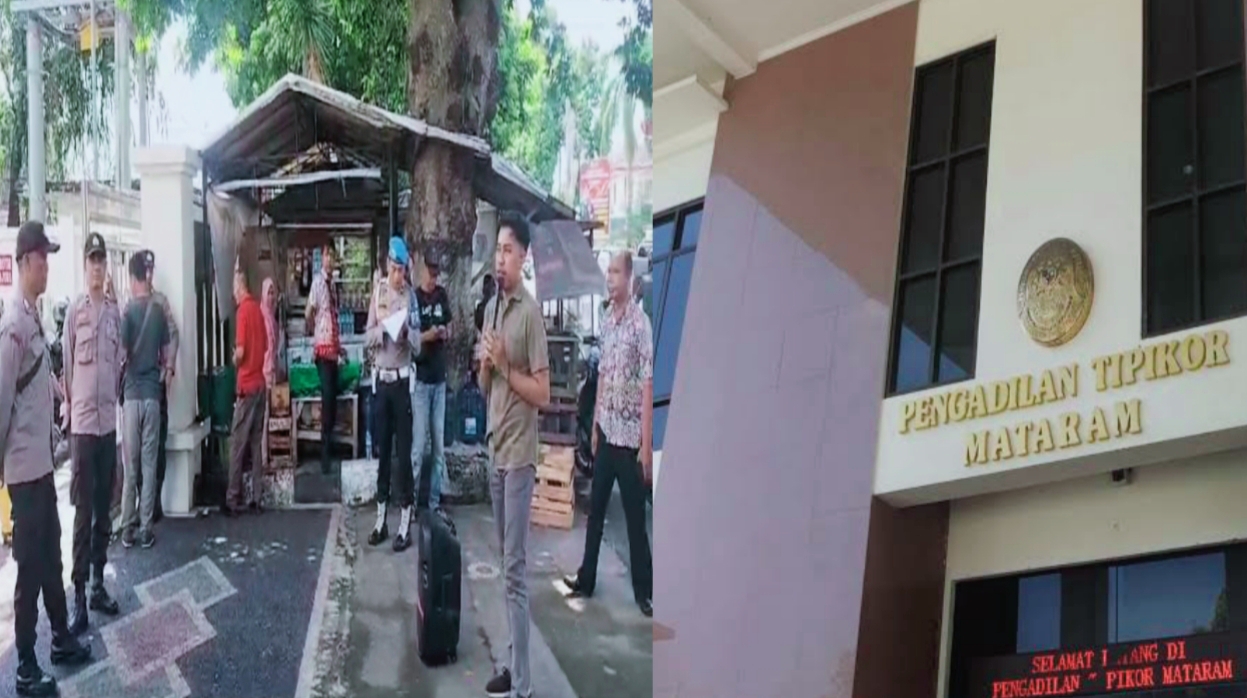 Demo Kantor PN Tipikor Mataram, Massa Aksi Desak Ketua Hakim Vonis Eks Walikota Bima dan Hj Eliya Jadi Tersangka