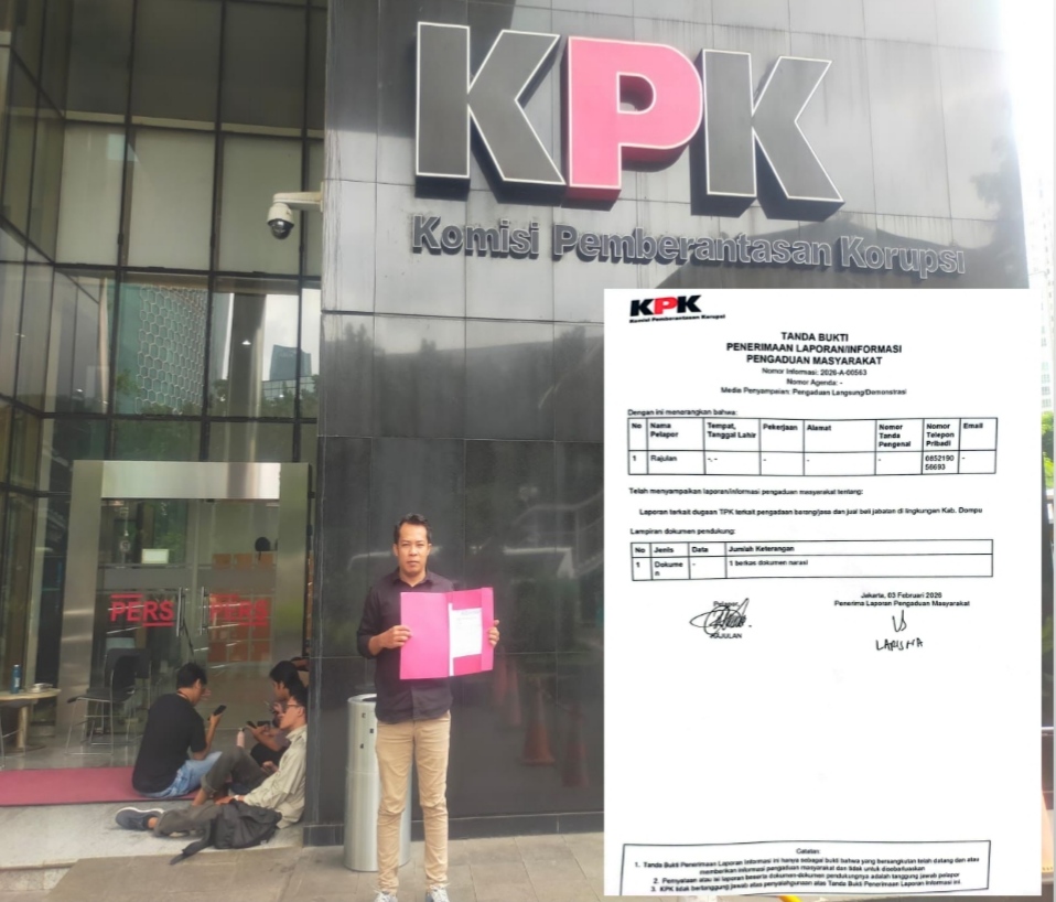 “Kami melaporkan dugaan tindak pidana korupsi yang dilakukan dengan pola konflik kepentingan, pengendalian anggaran, intervensi pengadaan barang dan jasa, serta dugaan pengaturan tender proyek di lingkungan Pemerintah Kabupaten Dompu Tahun Anggaran 2025,” tegas Rajulan.